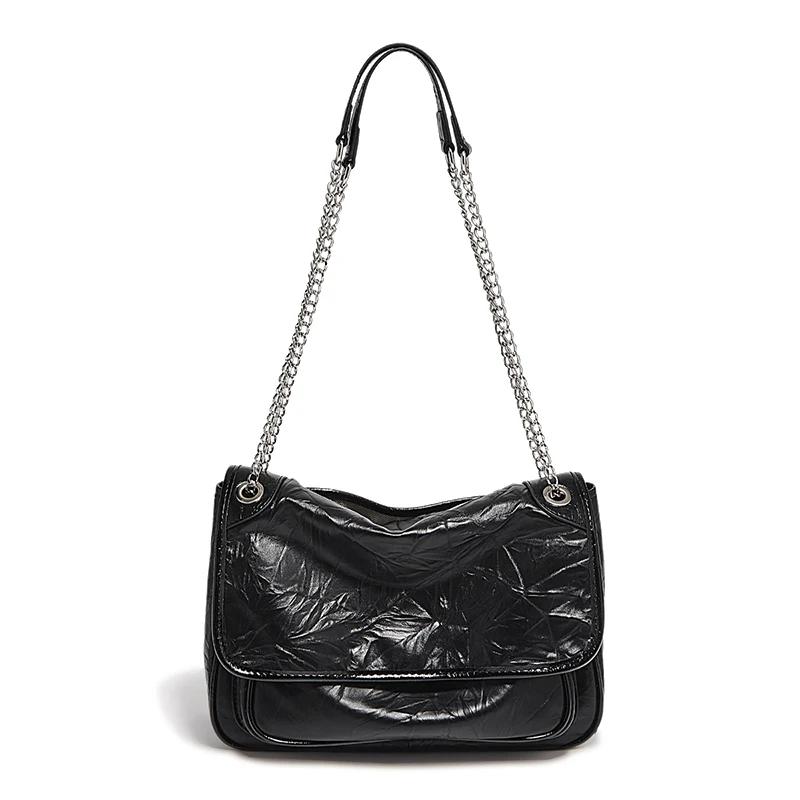 FOXER Women Genuine Leather + PU Shoulder Handbag Classic Black Bag